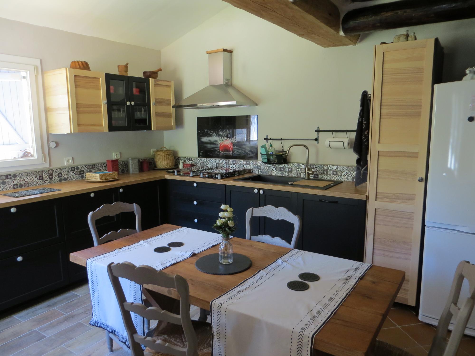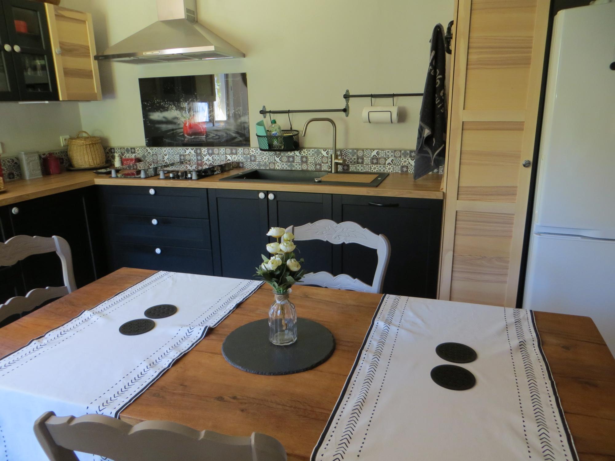 Réfrigirateur/congélateur, Four, plaque de cuisson/hotte aspirante, cafetière électrique, grille pain, lave vaisselle, torchon, nappe ...